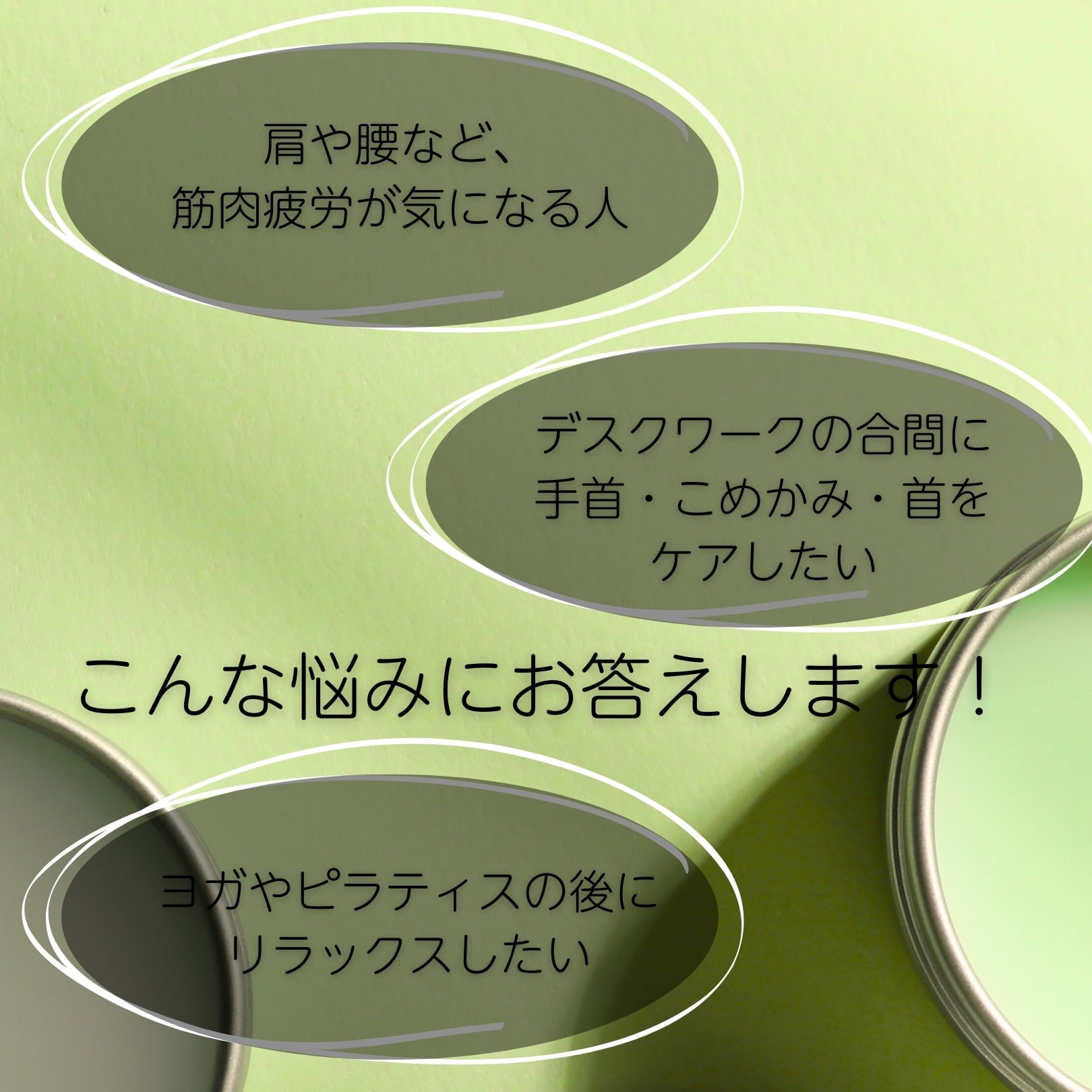 ~肩・首・腰・膝・ふくらはぎなど、全身の気になる部分にアプローチするボディケアバームです。