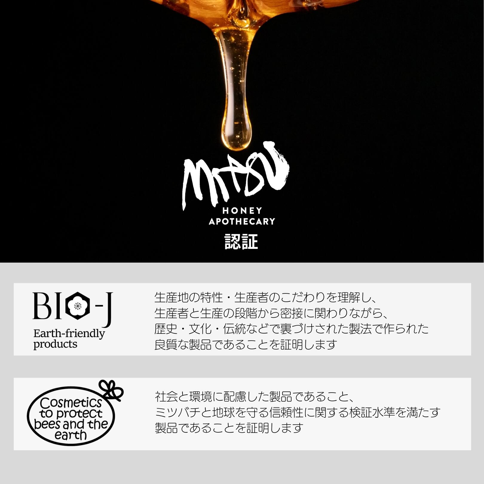 大阪・梅田の自社養蜂場で採れたハチミツ(保湿)とミツロウ(保護)をベースに、肌をやわらかく整えるホホバオイル・シアバター・椿油・植物オイルを贅沢にブレンド。自然指数100%(ISO16128準拠) の、家族で使えるやさしい処方です。
